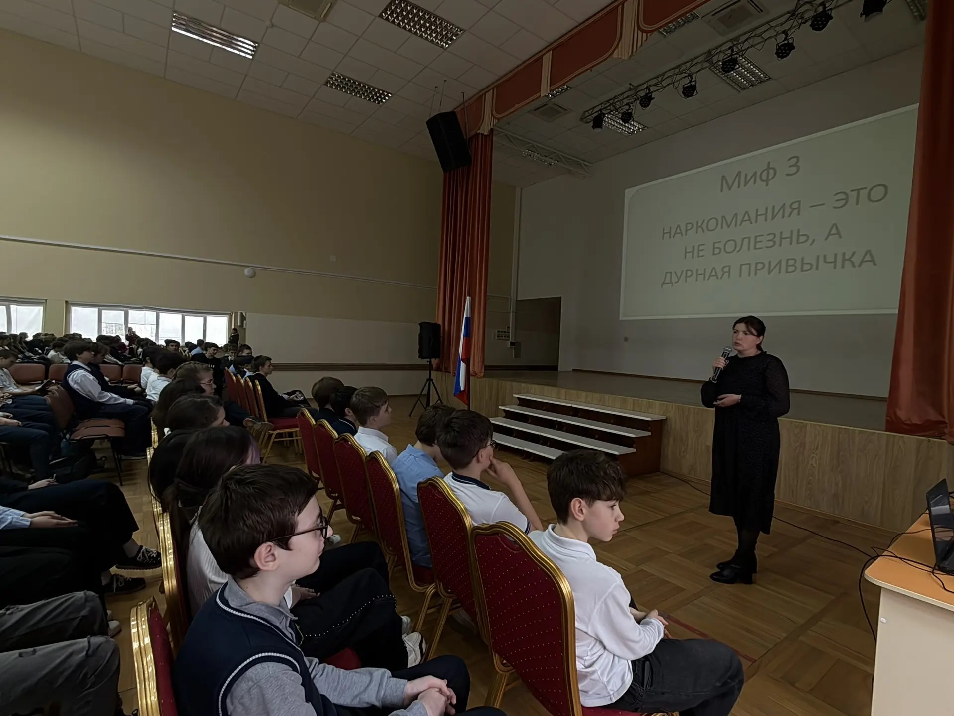 В гимназии №118 прошла важная встреча в рамках Недели профилактики 15 апреля 2026 года для обучающихся 6-х и 7-х классов состоялась беседа с врачом-наркологом Дробницей Еленой Геннадьевной. Мероприятие собрало около 200 школьников — никто не остался равнодушным к теме здорового образа жизни.